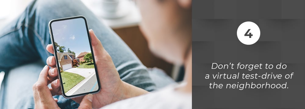 You may not be able to check out the local coffee shops and restaurants, but you can still do a virtual drive-by of the neighborhood. You can do this even before the scheduled showing to check the look and feel of the streets and surrounding areas, especially if you're still not familiar with the place.