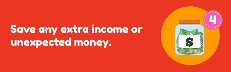 Any unexpected money that isn't part of your monthly income are known as “windfalls” in the financial industry. These windfalls could be an annual bonus at work, inheritance, cash gifts, tax refund, a birthday check you received from your parents or grandparents, and any other instances in which you get extra money. Instead of spending them on a new gadget, appliance, or on a shopping splurge, stash them away as part of your down payment savings.