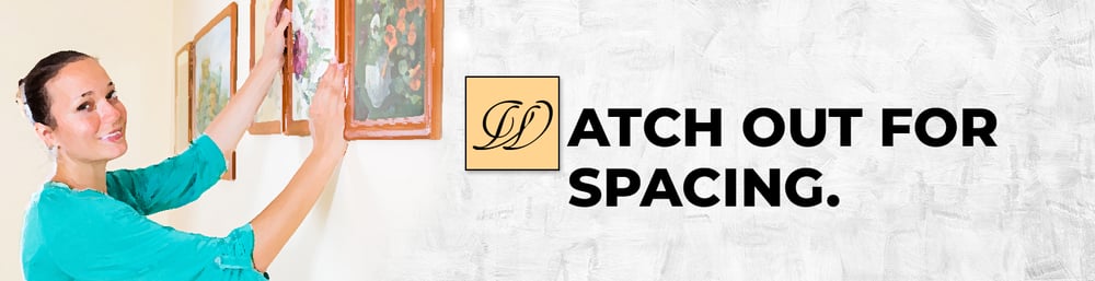For the spacing around your pieces, design experts suggest allowing 3 to 4 inches between each piece. Make sure that there's even distance between frames so that the gallery wall won’t look uneven or messy. Likewise, keep the entire collection between two-thirds to four-fifths of the size of the wall so it won’t look cramped or awkward.