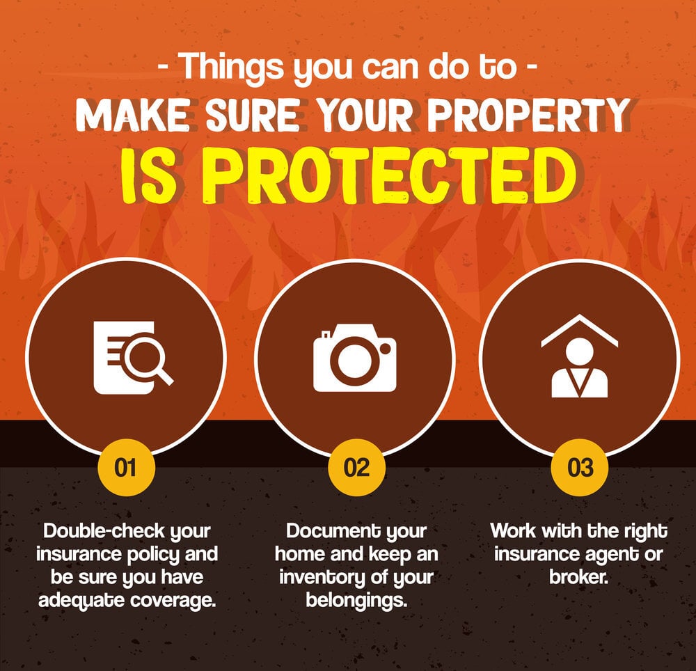 1. Double-check your insurance policy and be sure you have adequate coverage. Homeowners and renters alike, especially those who live in areas at risk of wildfires, should make sure their coverage is adequate and up to date. Review the fine print of your insurance policy and make sure nothing sneaky has made its way into your policy.